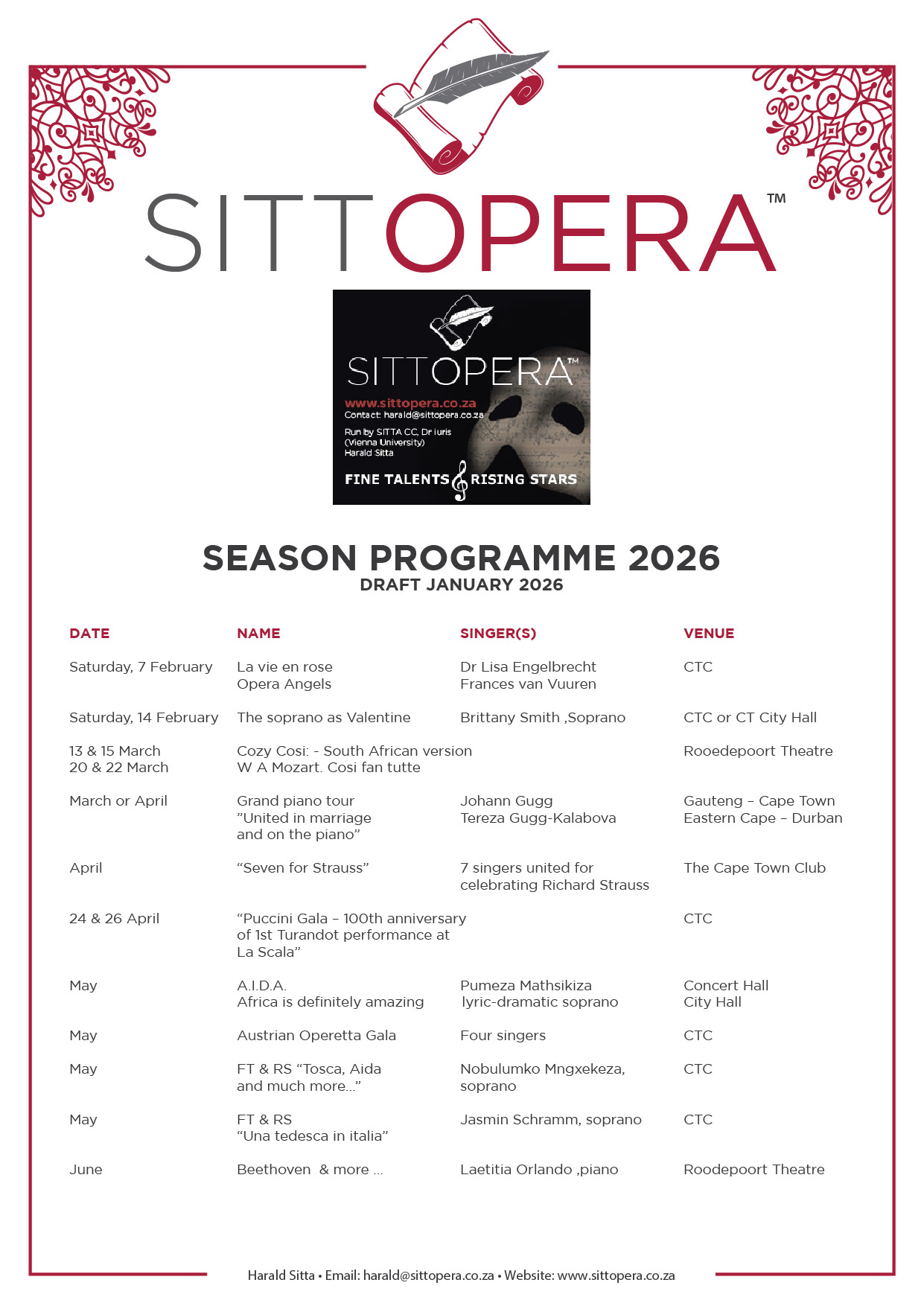 And operetta charm and brilliance going on with an Austrian Operetta Gala at the Johannesburg Country Club which is ready to go but we look for an appropriate date in 2026 in Cape Town!